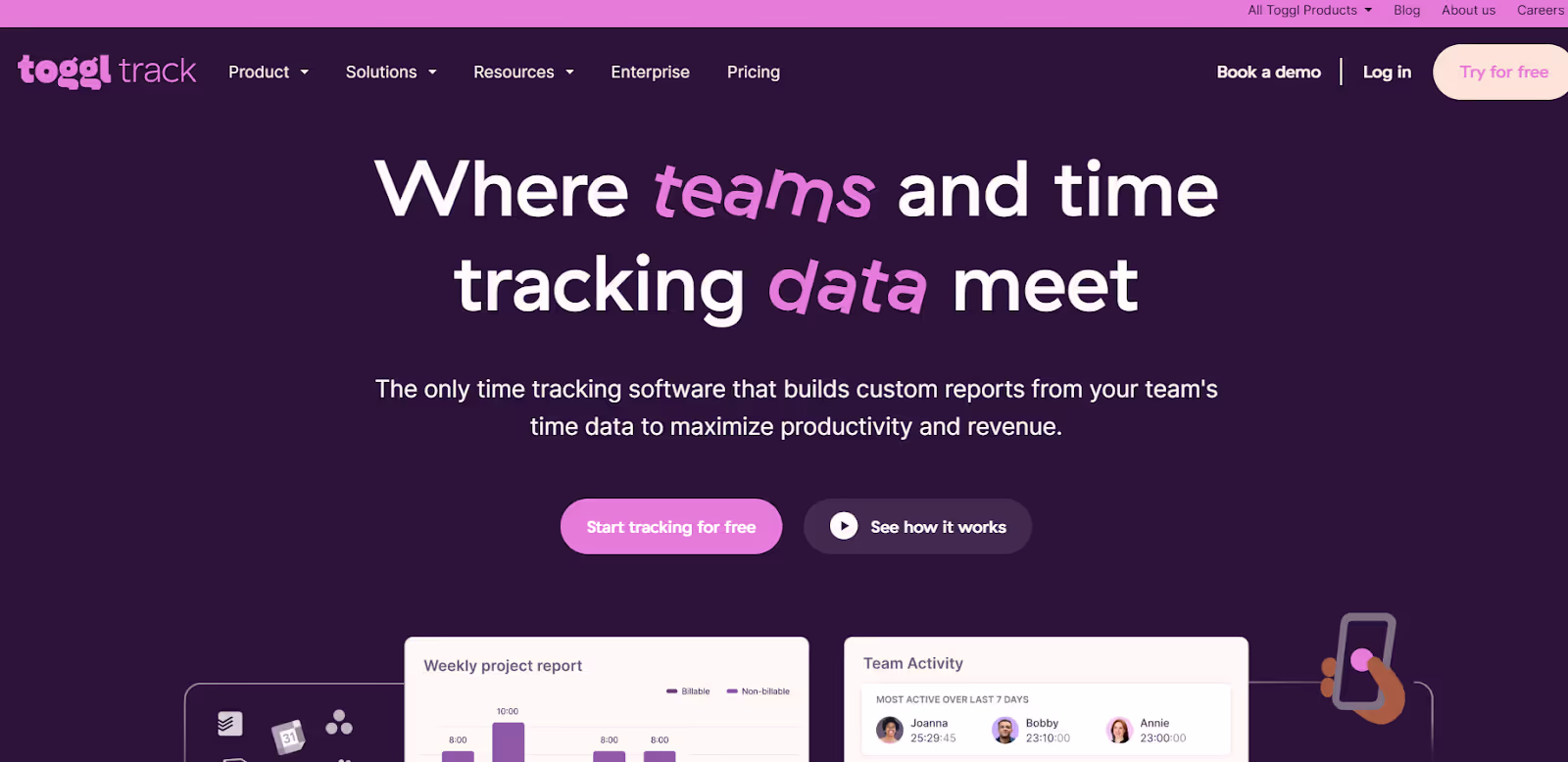Toggl Track is an employee time-tracking software that enables your teams to track time on multiple platforms with just one click.